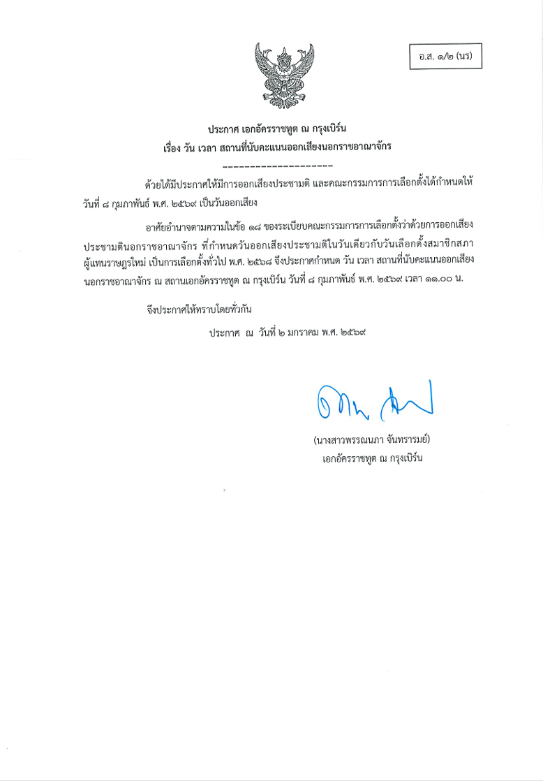 ประกาศ เอกอัครราชทูต ณ กรุงเบิร์น